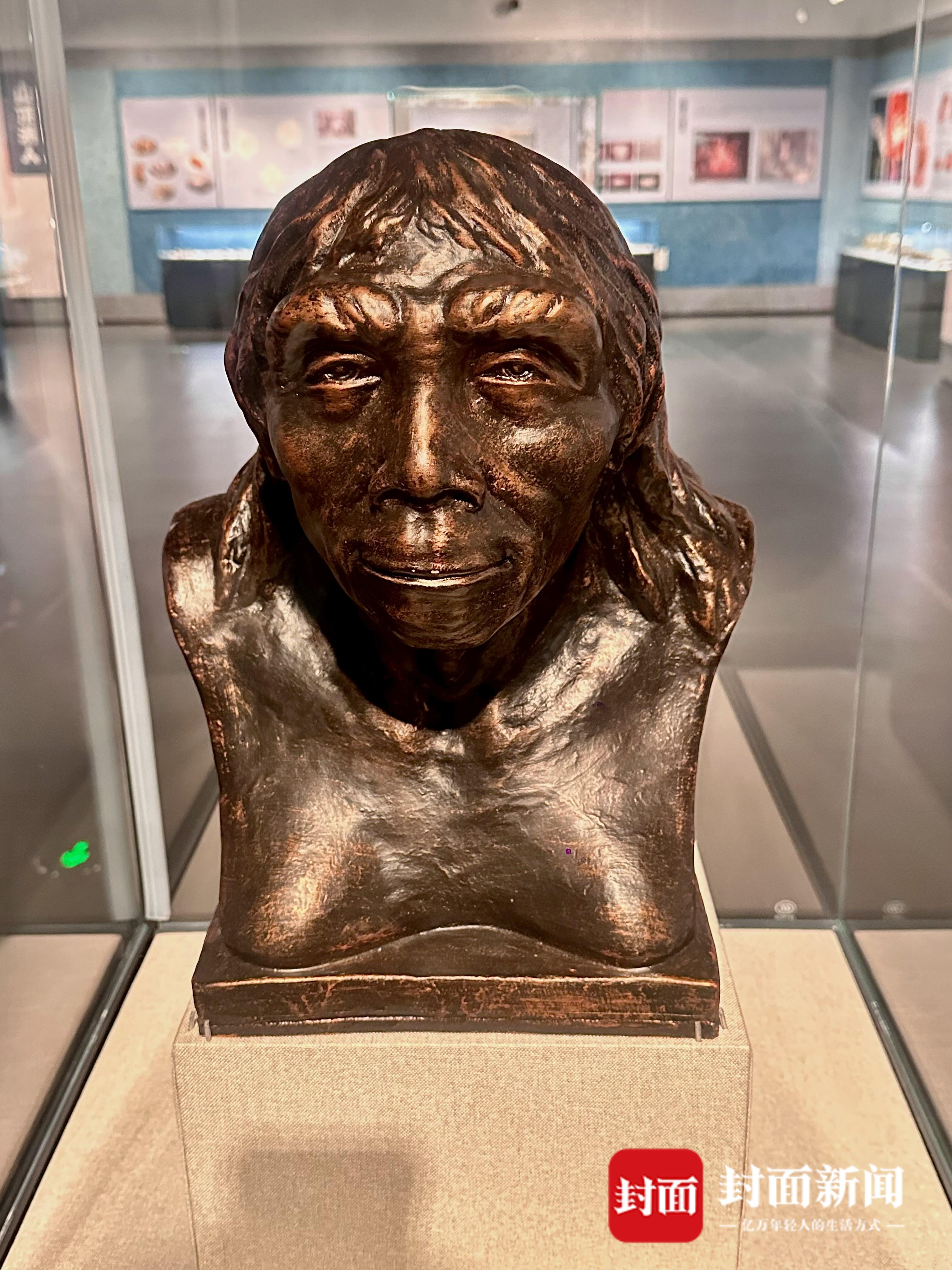 展出的“北京人”复原像\n摄影 王怡彤